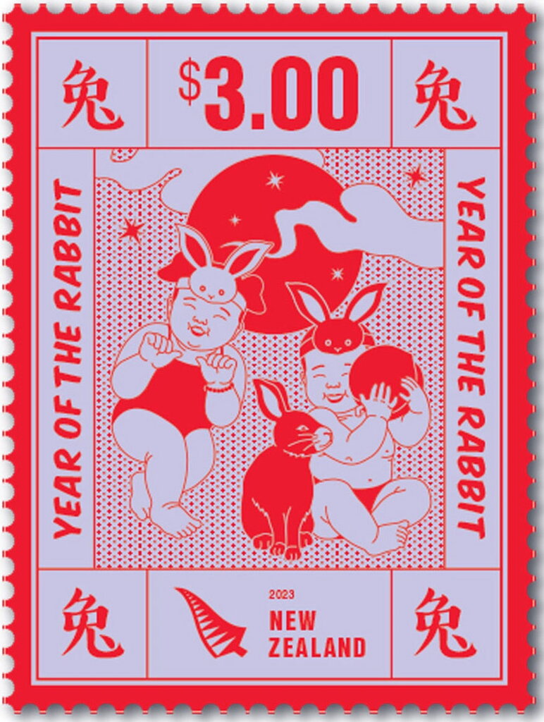 Visibility: public Image owner: none postage 12/7/2022 $3.00 multi issue=Year of the Rabbit 2023 unwmk Crops No visible images cropped from this one. Measurements Resolution is unknown. Source Source name: Colnect File URL: https://i.colnect.net/b/19404/043/Year-of-the-Rabbit-2023.jpg Page URL: https://colnect.com/en/stamps/stamp/1319246-Year_of_the_Rabbit_2023-Year_of_the_Rabbit_2023_2022-New_Zealand Gallery URL: https://colnect.com/en/stamps/list/country/154-New_Zealand/year/2022/page/7 Uploaded June 7, 2024, 4:48 am by Stan Shebs |