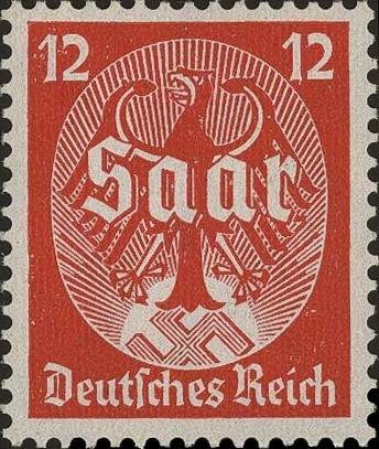 Visibility: public Image owner: none postage 8/26/1934 12pf rosered issue=Saar plebiscite d='Saar' on German eagle over swastika wmk=swastikas perf=14 Crops No visible images cropped from this one. Measurements Resolution is unknown. Source Source name: Colnect File URL: http://i.colnect.net/images/b/418/067/Imperial-eagle-with-inscription--quot-Saar-quot-.jpg Uploaded August 27, 2014, 10:05 pm by Stan Shebs |