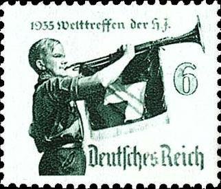 Visibility: public Image owner: none postage 7/25/1935 6pf dkgrn issue=Hitler Youth d=HJ fanfare player wmk=swastikas perf=14 Crops No visible images cropped from this one. Measurements Resolution is unknown. Source Source name: Colnect File URL: http://i.colnect.net/images/b/418/107/HJ-fanfare-player.jpg Uploaded August 27, 2014, 10:05 pm by Stan Shebs |
