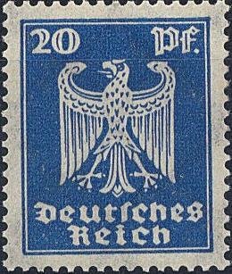 Visibility: public Image owner: none postage 3/1924 20pf bl issue=1924 d=German eagle (1924) wmk=network perf=14 Crops No visible images cropped from this one. Measurements Resolution is unknown. Source Source name: Colnect File URL: http://i.colnect.net/b/417/915/New-imperial-eagle.jpg Uploaded August 27, 2014, 10:13 pm by Stan Shebs |
