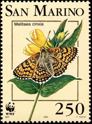 Visibility: public Image owner: none postage 5/26/1993 250l multi issue=WWF 1993 dt=butterflies (1993 San Marino) d=Melitaea cinxia (1993) unwmk Crops No visible images cropped from this one. Measurements Resolution is unknown. Source Source name: Colnect File URL: http://i.colnect.net/b/481/553/Glanville-Fritillary-Melitaea-cinxia.jpg Uploaded August 27, 2014, 11:16 pm by Stan Shebs |