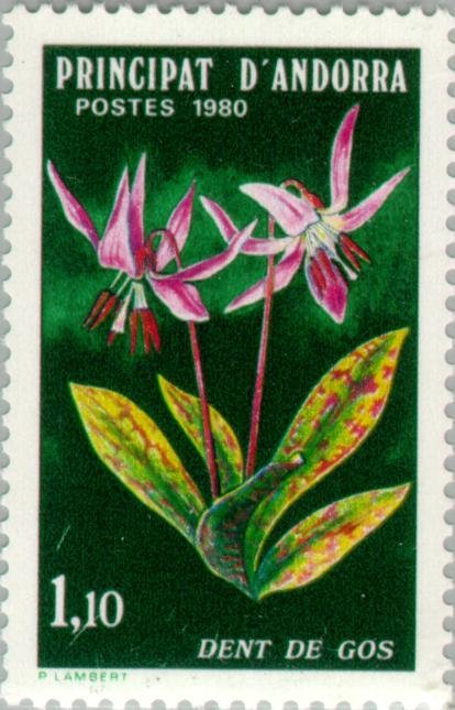 Visibility: public Image owner: none postage 6/21/1980 1.10fr multi issue=Nature protection 1980 unwmk perf=13 Crops No visible images cropped from this one. Measurements Resolution is unknown. Source Source name: Colnect File URL: http://i.colnect.net/b/141/970/Dog-s-tooth-violet---Erythronium-dens-canis.jpg Uploaded August 28, 2014, 9:05 pm by Stan Shebs |