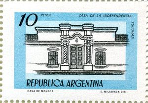 Visibility: public Image owner: none postage 3/14/1978 10p issue=1977 d=House of Independence Tucuman unwmk Crops No visible images cropped from this one. Measurements Resolution is unknown. Source Source name: Colnect (old) File URL: http://i.colnect.net/images/f/1516/979/House-of-Independence-Tucuman.jpg Uploaded April 18, 2013, 1:19 pm by Stan Shebs |