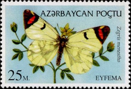 Visibility: public Image owner: none postage 1/23/1995 25m. multi dt=butterflies (1995 Azerbaijan) d=Zegris menestho unwmk Crops No visible images cropped from this one. Measurements Resolution is unknown. Source Source name: Colnect File URL: http://i.colnect.net/b/1093/172/Sooty-Orange-Tip-Zegris-eupheme-menestho-.jpg Uploaded August 28, 2014, 9:54 pm by Stan Shebs |