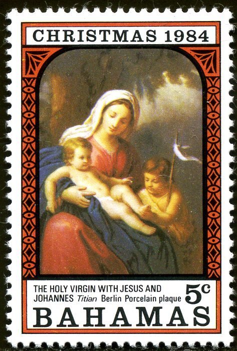 Visibility: public Image owner: none postage 11/7/1984 5c multi issue=Christmas 1984 dt=Religious Paintings (1984) d="The Holy Virgin with Jesus and John" wmk=mult crown & script CA perf=13.5 Crops No visible images cropped from this one. Measurements Resolution is unknown. Source Source name: Colnect File URL: http://i.colnect.net/images/b/1394/212/Titian.jpg Uploaded August 28, 2014, 10:01 pm by Stan Shebs |