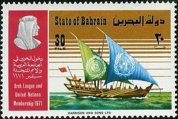 Visibility: public Image owner: none postage 2/1/1972 30f multi issue=Bahrain admission to UN d=dhow with UN emblem on sails unwmk perf=14x14.5 Crops No visible images cropped from this one. Measurements Resolution is unknown. Source Source name: Colnect File URL: http://i.colnect.net/b/1462/279/Arab-dhow-with-emblems-of-the-UN-and-the-league-on-the-sails.jpg Uploaded April 18, 2013, 9:54 pm by Stan Shebs |