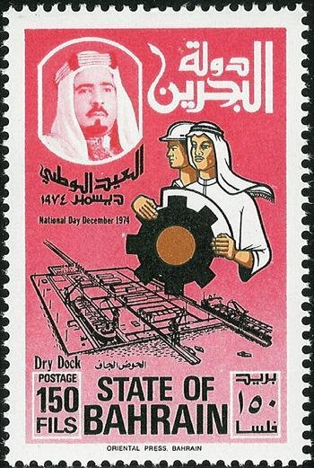Visibility: public Image owner: none postage 12/16/1974 150f multi issue=National Day 1974 d=Bahrain Dry Dock unwmk perf=14.5 Crops No visible images cropped from this one. Measurements Resolution is unknown. Source Source name: Colnect File URL: http://i.colnect.net/b/1462/441/Drydock-emblem.jpg Uploaded April 18, 2013, 9:55 pm by Stan Shebs |