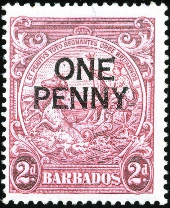 Visibility: public Image owner: none postage 4/21/1947 1p car d=seal of Barbados (1938) ovpt=ONE//PENNY oc=blk on=1943-2p wmk=mult crown & script CA perf=13-14 Crops No visible images cropped from this one. Measurements Resolution is unknown. Source Source name: Colnect File URL: http://i.colnect.net/b/1496/745/Surcharged-in-Black.jpg Uploaded August 28, 2014, 10:26 pm by Stan Shebs |