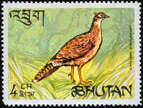 Visibility: public Image owner: none postage 1/20/1968 4ch multi issue=1968a dt=pheasants (1968) d=Lophophorus impejanus unwmk Crops No visible images cropped from this one. Measurements Resolution is unknown. Source Source name: Colnect File URL: http://i.colnect.net/b/1412/508/Himalayan-Monal-Lophophorus-impejanus.jpg Uploaded August 28, 2014, 11:42 pm by Stan Shebs |