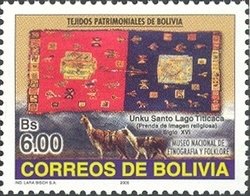 Visibility: public Image owner: none postage 4/1/2005 6.00b multi dt=Heritage of Woven Material from Bolivia unwmk Crops No visible images cropped from this one. Measurements Resolution is unknown. Source Source name: Colnect File URL: http://i.colnect.net/images/b/1410/278/Heritage-of-Woven-Material-from-Bolivia.jpg Uploaded August 28, 2014, 11:47 pm by Stan Shebs |