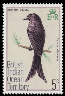 Visibility: public Image owner: none postage 2/28/1975 5c multi issue=1975 dt=birds (1975 British Indian Ocean Territory) d=Dicrurus aldabranus wmk=St Edwards crown & CA Crops No visible images cropped from this one. Measurements Resolution is unknown. Source Source name: Colnect File URL: http://i.colnect.net/images/b/1379/302/Aldabra-Drongo-Dicrurus-aldabranus.jpg Uploaded August 29, 2014, 12:34 am by Stan Shebs |
