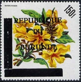 Visibility: public Image owner: none Crops No visible images cropped from this one. Measurements Resolution is unknown. Source Source name: Colnect File URL: http://i.colnect.net/images/b/1430/619/Markhamia-BI-187.jpg Uploaded August 29, 2014, 3:14 am by Stan Shebs |