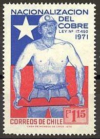 Visibility: public Image owner: none postage 7/11/1972 1.15e bl&red issue=copper industry nationalization d=miner holding copper ingot unwmk Crops No visible images cropped from this one. Measurements Resolution is unknown. Source Source name: Colnect File URL: http://i.colnect.net/b/1376/613/Miner-Holding-Copper-Ingot-Chilean-Flag.jpg Uploaded August 29, 2014, 1:36 pm by Stan Shebs |