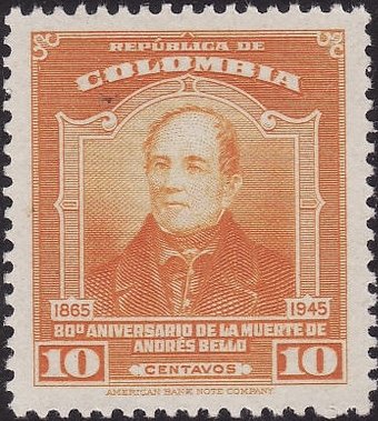 Visibility: public Image owner: none postage 9/3/1946 10c org issue=Bello death 80th d=Bello (1946) wmk=wavy lines & C multiple perf=12 Crops No visible images cropped from this one. Measurements Resolution is unknown. Source Source name: Colnect File URL: http://i.colnect.net/images/b/1504/002/Andres-Bello-1781-1865.jpg Uploaded August 29, 2014, 2:25 pm by Stan Shebs |