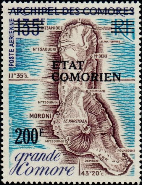 Visibility: public Image owner: none postage 200fr multi issue=1975 d=++on=135fr unwmk Crops No visible images cropped from this one. Measurements Resolution is unknown. Source Source name: Colnect File URL: http://i.colnect.net/images/b/547/806/Grande-Comore-island.jpg Uploaded August 29, 2014, 2:28 pm by Stan Shebs |