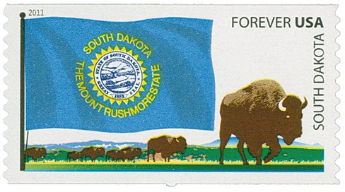 Visibility: public Image owner: none postage 8/11/2011 forever multi issue=Flags of Our Nation dt=flags (2011) d=flag of South Dakota & bison unwmk perf=11v Crops No visible images cropped from this one. Measurements Resolution is unknown. Source Source name: Colnect File URL: http://i.colnect.net/b/1416/881/South-Dakota-State-Flag.jpg Uploaded August 29, 2014, 4:03 pm by Stan Shebs |