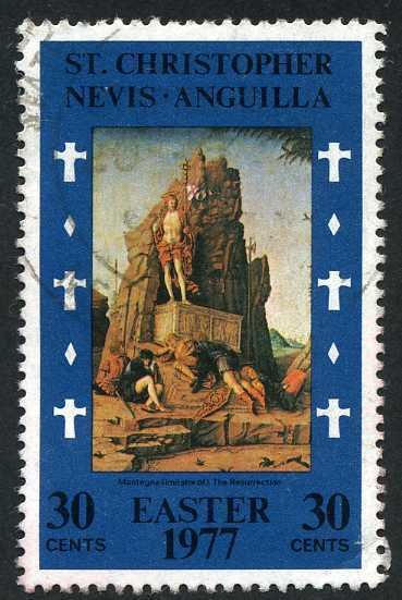 Visibility: public Image owner: none postage 4/14/1977 30c multi issue=Easter 1977 dt=paintings (1977 St. KittsNevis) d=The Resurrection imitator of Mantegna wmk=crown & CA spiral perf=14.5 Crops No visible images cropped from this one. Measurements Resolution is unknown. Source Source name: Colnect File URL: http://i.colnect.net/b/988/836/The-Resurrection-imitator-of-Mantegna.jpg Uploaded August 29, 2014, 4:39 pm by Stan Shebs |