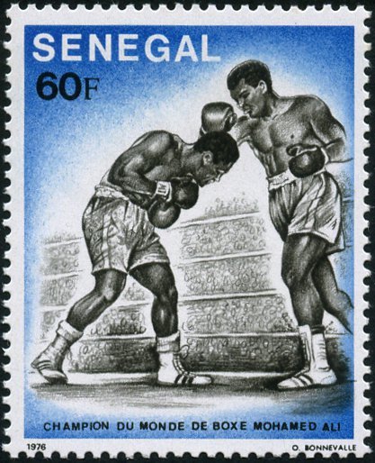 Visibility: public Image owner: none postage 1/7/1977 60fr multi issue=World Boxing Champion Muhammad Ali unwmk perf=13x13.5 Crops No visible images cropped from this one. Measurements Resolution is unknown. Source Source name: Colnect File URL: http://i.colnect.net/b/897/894/Mohamed-Ali-boxing-world-champion.jpg Uploaded August 29, 2014, 6:41 pm by Stan Shebs |