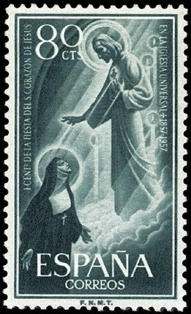 Visibility: public Image owner: none postage 10/12/1957 80c dkblgrn d=Sacred Heart of Jesus feast unwmk perf=14 Crops No visible images cropped from this one. Measurements Resolution is unknown. Source Source name: Colnect File URL: http://i.colnect.net/b/1299/762/Centenary-of-the-Feast-of-the-Sacred-Heart.jpg Uploaded April 23, 2013, 5:39 am by Stan Shebs |