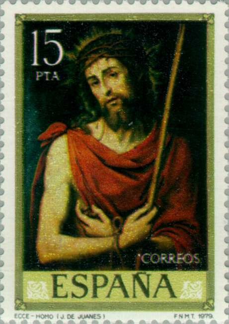 Visibility: public Image owner: none postage 9/28/1979 15p multi issue=400th Anniversary of the Death of Juan de Juanes d=Ecce-Homo Juan de Juanes unwmk Crops No visible images cropped from this one. Measurements Resolution is unknown. Source Source name: Colnect File URL: http://i.colnect.net/b/174/579/-Ecce-Homo--Juan-de-Juanes.jpg Uploaded April 23, 2013, 6:02 am by Stan Shebs |