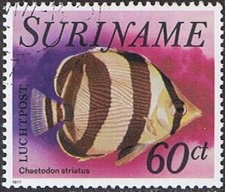 Visibility: public Image owner: none airmail 6/8/1977 60c multi issue=1977 dt=fishes (1977 Surinam) d=Chaetodon striatus (1977) unwmk perf=12.75x13.25 Crops No visible images cropped from this one. Measurements Resolution is unknown. Source Source name: Colnect File URL: http://i.colnect.net/b/1252/449/Banded-Butterflyfish-Chaetodon-striatus.jpg Uploaded August 29, 2014, 9:08 pm by Stan Shebs |