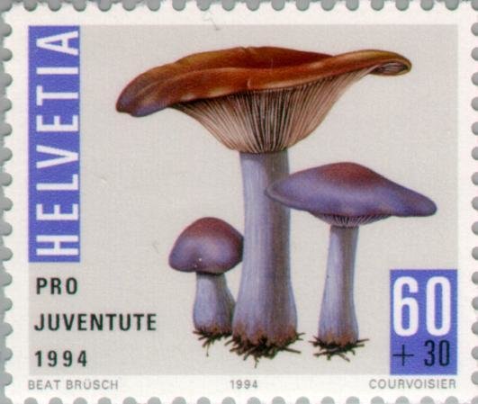 Visibility: public Image owner: none postage 11/28/1994 60+30(c) multi issue=Pro Juventute 1994 d=Wood Blewit Lepista Clitocybe nuda unwmk Crops No visible images cropped from this one. Measurements Resolution is unknown. Source Source name: Colnect File URL: http://i.colnect.net/b/141/181/Wood-Blewit-Lepista-Clitocybe-nuda.jpg Uploaded August 30, 2014, 2:40 pm by Stan Shebs |