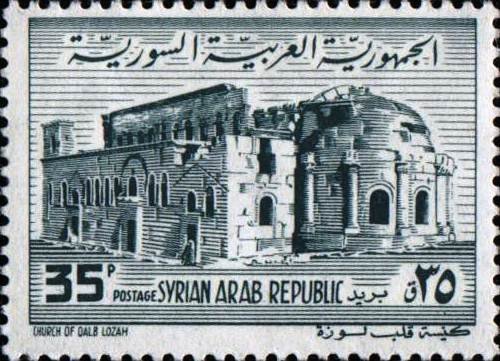 Visibility: public Image owner: none postage 5/28/1962 35p dkbl issue=1961 d=Qalb Lozah Church at Aleppo wmk=national emblem multiple Crops No visible images cropped from this one. Measurements Resolution is unknown. Source Source name: Colnect File URL: http://i.colnect.net/b/1495/386/Qalb-Lozah-Church-at-Aleppo.jpg Uploaded August 30, 2014, 2:44 pm by Stan Shebs |