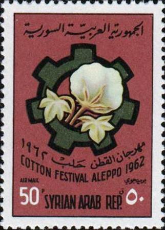 Visibility: public Image owner: none airmail 9/20/1962 50p multi issue=Cotton Festival at Aleppo 1962 d=Cotton & Cogwheel wmk=national emblem multiple Crops No visible images cropped from this one. Measurements Resolution is unknown. Source Source name: Colnect File URL: http://i.colnect.net/b/1495/999/Cotton-and-Cogwheel.jpg Uploaded August 30, 2014, 2:44 pm by Stan Shebs |