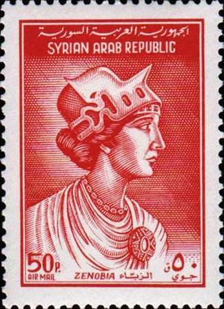 Visibility: public Image owner: none airmail 12/27/1962 50p red issue=1962 air d=Queen Zenobia wmk=national emblem multiple Crops No visible images cropped from this one. Measurements Resolution is unknown. Source Source name: Colnect File URL: http://i.colnect.net/b/1495/407/Queen-Zenobia.jpg Uploaded August 30, 2014, 2:44 pm by Stan Shebs |