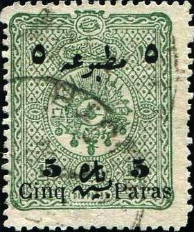 Visibility: public Image owner: none newspaper 5pa graygrn d=arms of sultan & tughra ovpt=Cinq Paras newspaper oc=blk on=1892-10pa-graygrn unwmk perf=13.5 Crops No visible images cropped from this one. Measurements Resolution is unknown. Source Source name: Colnect File URL: http://i.colnect.net/b/1438/431/Surcharge-on-Coat-of-Arms-stamp-of-1892.jpg Uploaded August 30, 2014, 3:19 pm by Stan Shebs |