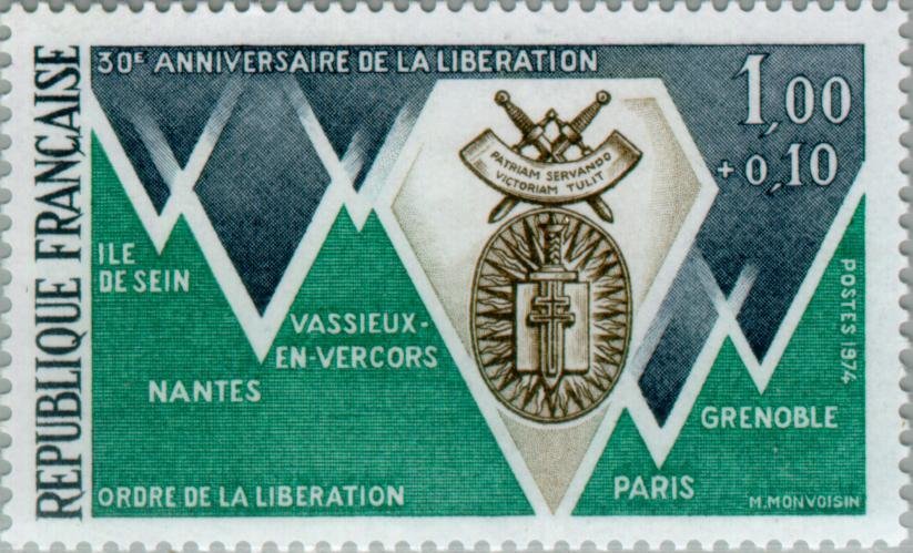 Visibility: public Image owner: none semipostal 6/15/1974 1.00+0.10fr multi issue=Order of Liberation and Honoured Towns d=Order of the Liberation unwmk perf=13 Crops No visible images cropped from this one. Measurements Resolution is unknown. Source Source name: Colnect File URL: http://i.colnect.net/b/144/905/Order-of-the-Liberation.jpg Uploaded August 30, 2014, 5:11 pm by Stan Shebs |