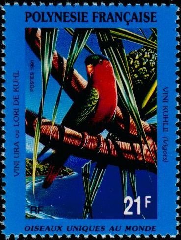 Visibility: public Image owner: none postage 6/5/1991 21fr multi dt=protected birds (1991) d=Lori Kuhl Vini kuhlii unwmk Crops No visible images cropped from this one. Measurements Resolution is unknown. Source Source name: Colnect File URL: http://i.colnect.net/b/1162/871/Kuhl--s-Lorikeet-Vini-kuhlii.jpg Uploaded August 30, 2014, 5:46 pm by Stan Shebs |