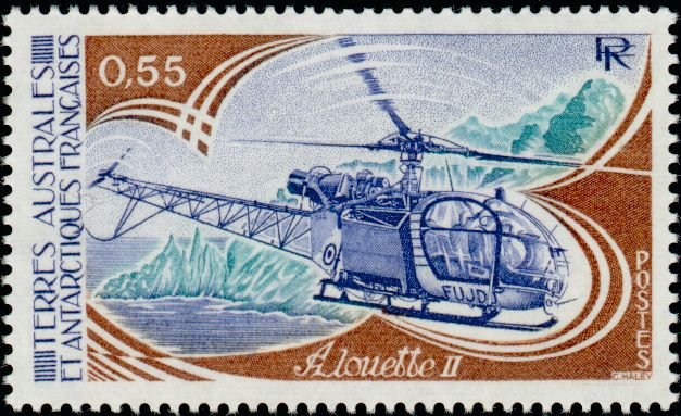 Visibility: public Image owner: none postage 12/11/1981 0.55c multi issue=Helicopters 1981 d=Sud Aviation Alouette II Helicopter unwmk Crops No visible images cropped from this one. Measurements Resolution is unknown. Source Source name: Colnect File URL: http://i.colnect.net/b/886/038/Alouette-II.jpg Uploaded June 23, 2014, 1:47 pm by Stan Shebs |