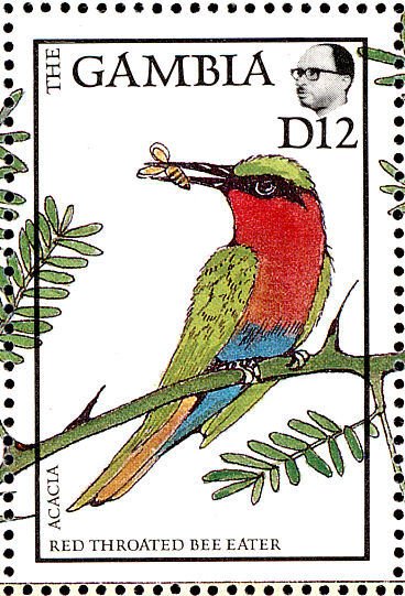 Visibility: public Image owner: none postage 2/9/1988 12d multi dt=flora and fauna (1988) d=Melittophagus bulocki & Acacia spp. unwmk perf=15 Crops No visible images cropped from this one. Measurements Resolution is unknown. Source Source name: Colnect File URL: http://i.colnect.net/b/1462/487/Red-throated-Bee-eater-Merops-bullocki.jpg Uploaded August 30, 2014, 6:00 pm by Stan Shebs |