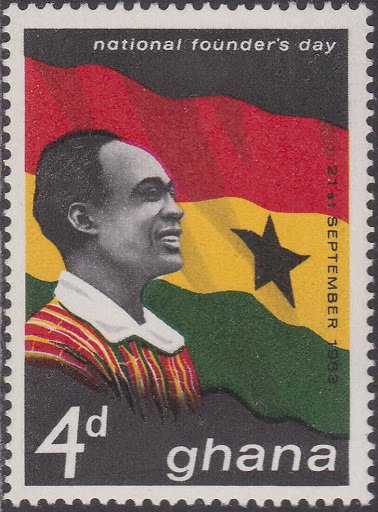 Visibility: public Image owner: none postage 9/21/1963 4p multi issue=Founder's Day 1963 d=Nkrumah & flag wmk=star & G mult perf=14x14.75 Crops No visible images cropped from this one. Measurements Resolution is unknown. Source Source name: Colnect File URL: http://i.colnect.net/images/b/1448/709/Nkrumah-and-flag.jpg Uploaded August 30, 2014, 6:32 pm by Stan Shebs |