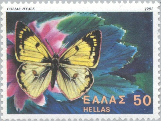 Visibility: public Image owner: none postage 6/30/1981 50d multi dt=butterflies, shells and fishes d=Colias hyale (1981) wmk=crowns Crops No visible images cropped from this one. Measurements Resolution is unknown. Source Source name: Colnect File URL: http://i.colnect.net/images/b/175/037/Pale-Clouded-Yellow-Colias-hyale.jpg Uploaded August 30, 2014, 6:44 pm by Stan Shebs |