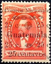 Visibility: public Image owner: none postage 3/6/1886 25c red d=Barrios ovpt=Correos Nacionales//chain//25 c. 25 c.//Guatemala//25 c. 25 c.//25 centavos. oc=blk on=1p-Barrios-unissued unwmk Crops No visible images cropped from this one. Measurements Resolution is unknown. Source Source name: Colnect File URL: http://i.colnect.net/images/b/1262/498/Justo-Rufino-Barrios-1835-ndash-1885-9th-President.jpg Uploaded August 30, 2014, 10:14 pm by Stan Shebs |