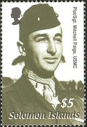 Visibility: public Image owner: none postage 8/7/2002 $5 multi issue=Battle of Guadalcanal 60th unwmk perf=14x14.3 Crops No visible images cropped from this one. Measurements Resolution is unknown. Source Source name: Colnect File URL: http://i.colnect.net/images/b/1428/824/Plat-Sgt-Mitchell-Paige.jpg Uploaded August 31, 2014, 12:54 am by Stan Shebs |