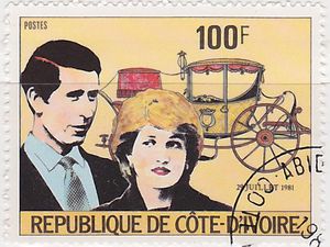 Visibility: public Image owner: none postage 8/8/1981 100fr multi issue=Royal Wedding 1981 unwmk Crops No visible images cropped from this one. Measurements Resolution is unknown. Source Source name: Colnect (old) File URL: http://i.colnect.net/images/f/503/155/Prince-Charles-and-Lady-Diana.jpg Uploaded May 12, 2013, 2:16 pm by Stan Shebs |