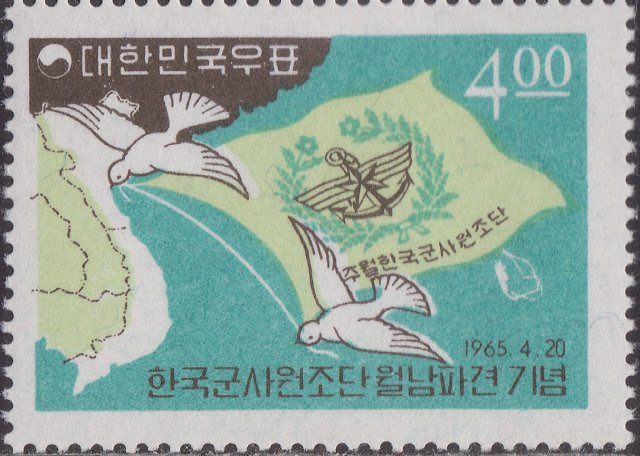 Visibility: public Image owner: none postage 4/20/1965 4w multi issue=Korean military assistance to Vietnam d=map of Vietnam & flag of Korean Assistance Group unwmk Crops No visible images cropped from this one. Measurements Resolution is unknown. Source Source name: Colnect File URL: http://i.colnect.net/b/1496/879/Map-of-Vietnam-and-flag-of-Korean-Assistance-Group.jpg Uploaded August 31, 2014, 1:12 am by Stan Shebs |