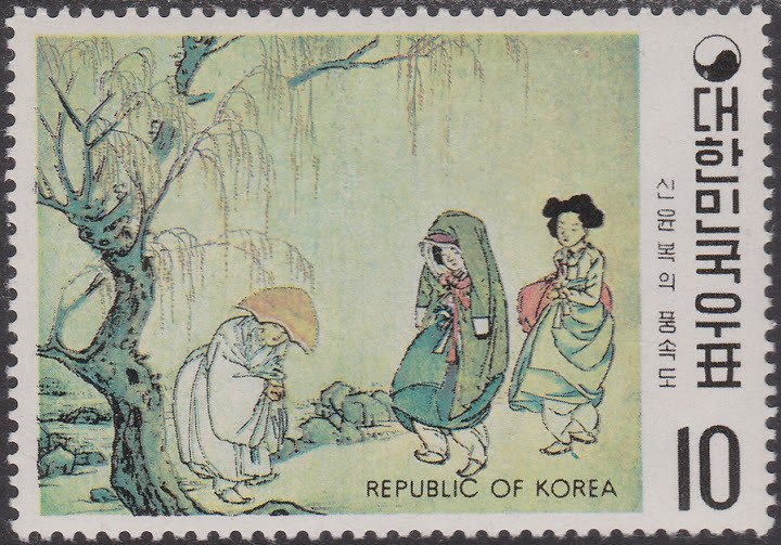 Visibility: public Image owner: none postage 6/20/1971 10w multi dt=Korean Paintings of the Yi Dynasty d="Lady and Servants on Country Road" - Shin Yun Bok wmk=winged circle Crops No visible images cropped from this one. Measurements Resolution is unknown. Source Source name: Colnect File URL: http://i.colnect.net/b/1432/584/Greeting-travelers.jpg Uploaded August 31, 2014, 1:12 am by Stan Shebs |