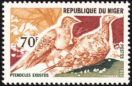 Visibility: public Image owner: none postage 11/18/1967 70fr multi issue=1967 birds d=Pterocles exustus (1967) unwmk perf=13 Crops No visible images cropped from this one. Measurements Resolution is unknown. Source Source name: Colnect File URL: http://i.colnect.net/b/1507/002/Chestnut-bellied-Sandgrouse-Pterocles-exustus.jpg Uploaded August 31, 2014, 1:14 am by !?membname0!? |