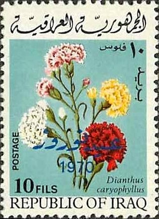 Visibility: public Image owner: none postage 3/21/1970 10f multi issue=Nowruz 1970 dt=flowers (1970 Iraq) d=Dianthus caryophyllus (1970) on=issue=Flowers 1970-10f unwmk perf=13 Crops No visible images cropped from this one. Measurements Resolution is unknown. Source Source name: Colnect File URL: http://i.colnect.net/b/1536/115/Carnations.jpg Uploaded August 31, 2014, 12:53 pm by Stan Shebs |