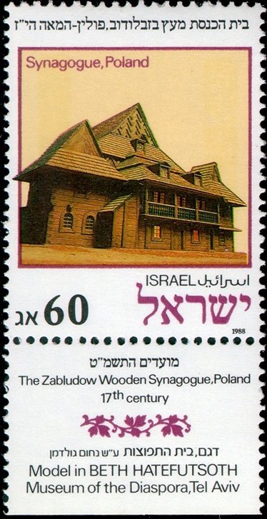 Visibility: public Image owner: none postage 9/1/1988 60ag multi issue=Jewish New Year 1988 dt=Synagogue Models in Museum of the Diaspora, Tel Aviv unwmk Crops No visible images cropped from this one. Measurements Resolution is unknown. Source Source name: Colnect File URL: http://i.colnect.net/b/795/983/The-Zabludow-Wooden-Synagogue-Poland---17th-century.jpg Uploaded August 31, 2014, 12:57 pm by Stan Shebs |