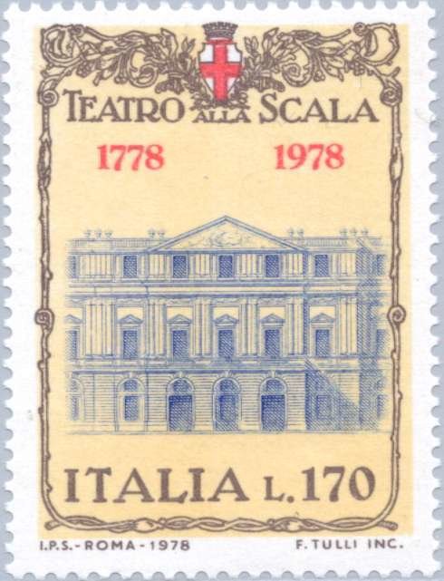 Visibility: public Image owner: none postage 3/15/1978 170l multi issue=La Scala Opera House 200th wmk=stars Crops No visible images cropped from this one. Measurements Resolution is unknown. Source Source name: Colnect File URL: http://i.colnect.net/b/174/101/La-Scala-Opera-House.jpg Uploaded August 31, 2014, 1:26 pm by Stan Shebs |