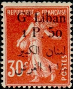 Visibility: public Image owner: none postage 7/1/1924 1.50p red issue=1924d ovpt=Gd Liban//value//(arabic) oc=blk on=issuer=France-30c-red Crops No visible images cropped from this one. Measurements Resolution is unknown. Source Source name: Colnect File URL: http://i.colnect.net/images/b/807/623/Type-Semeuse.jpg Uploaded August 31, 2014, 2:55 pm by Stan Shebs |