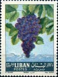 Visibility: public Image owner: none postage 17.50p multi issue=Fruits 1962 dt=fruits (1962 Lebanon) d=Vitis vinifera (1962) unwmk perf=13.5 Crops No visible images cropped from this one. Measurements Resolution is unknown. Source Source name: Colnect File URL: http://i.colnect.net/images/b/1366/542/Vitis-vinifera.jpg Uploaded August 31, 2014, 2:59 pm by Stan Shebs |
