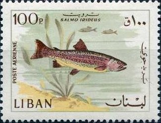 Visibility: public Image owner: none postage 2/1968 100pia multi issue=fish 1968 dt=fishes (1968 Lebanon) d=Salmo irideus unwmk perf=12x11.5 Crops No visible images cropped from this one. Measurements Resolution is unknown. Source Source name: Colnect File URL: http://i.colnect.net/images/b/1248/112/Rainbow-Trout-Oncorhynchus-mykiss.jpg Uploaded August 31, 2014, 3:06 pm by Stan Shebs |