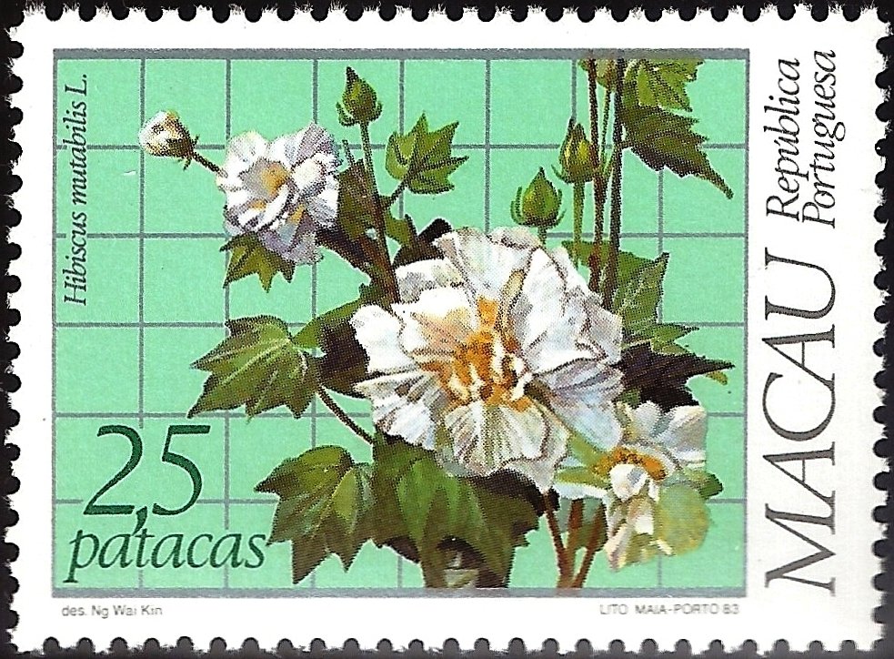 Visibility: public Image owner: none postage 7/14/1983 2,50P multi dt=Regional Medicinal Plants d=Hibiscus mutabilis (1983) unwmk perf=13 Crops No visible images cropped from this one. Measurements Resolution is unknown. Source Source name: Colnect File URL: http://i.colnect.net/images/b/1454/007/Plants.jpg Uploaded August 31, 2014, 5:43 pm by Stan Shebs |