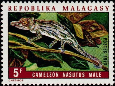 Visibility: public Image owner: none postage 6/15/1973 5fr multi dt=Chameleons d=Chamaeleo nasutus unwmk Crops No visible images cropped from this one. Measurements Resolution is unknown. Source Source name: Colnect File URL: http://i.colnect.net/b/955/488/Bignose-Chameleon-Chameleo-nasatus---Male.jpg Uploaded August 31, 2014, 6:01 pm by Stan Shebs |